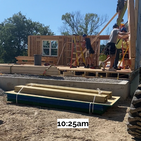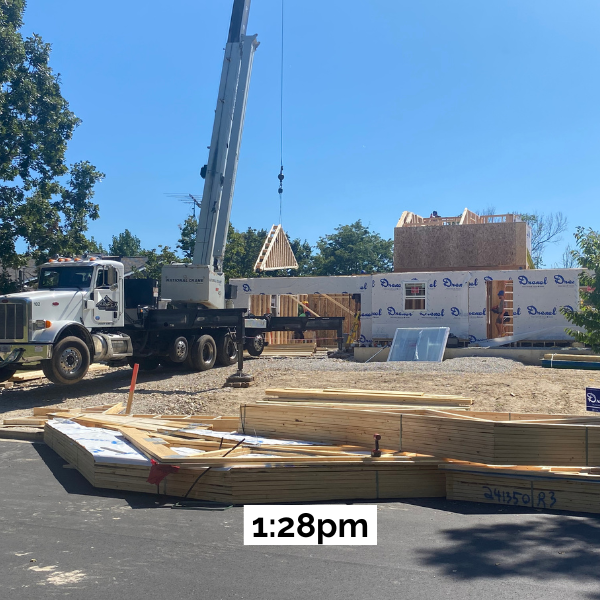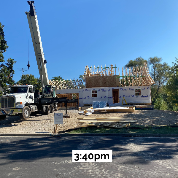 I stopped at the lot before work around 6am and it was just a backfilled lot. Three truss loads later, we have a house within a day.