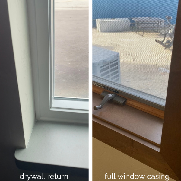 For trim and mouldings, I just wanted something simple. There are options for designs and all the colonial chaos, but I wasn’t really into that. I decided white, flat, round edge trim is probably the way to go. Then there was the question if I was into full window casing versus drywall return. I compared below, and right now I would go with full window casing. The drywall return looked a little too commercial, which I mean the photo I took is from a conference room so yeahhhh…